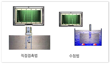 전달하는 방법을 직접 접촉법이라하고, 시험체를 물과 같은 액체 접촉매질속에 넣고 초음파의 진동을 액체를 통해 시험체에 전달
